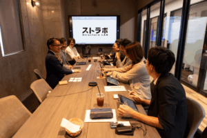 株式会社エナ・デザインコンサルタント様にご訪問いただき、弊社代表の小林玄彦と、「ストラボ」の開発に全面的にご協力いただいたさくら構造株式会社の田中真一社長による座談会を開催しました。