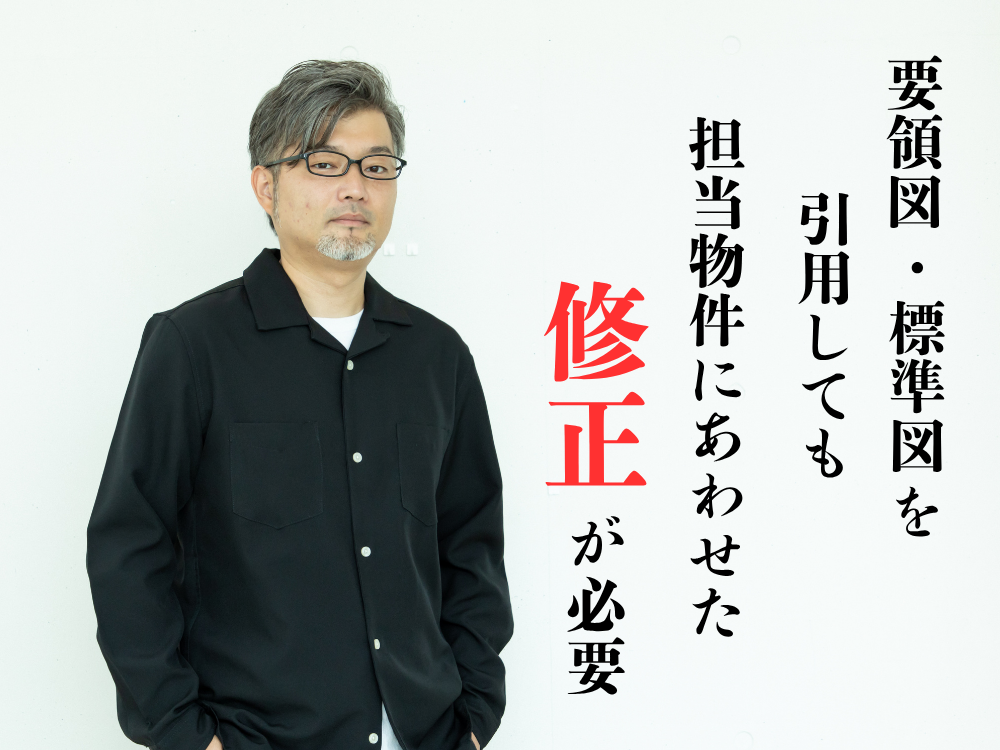 図面担当は、参考物件に使用されている図を引用する際に、要領図・詳細図が担当物件の計画に沿っているか、中身を修正する必要があるか、を確認する。