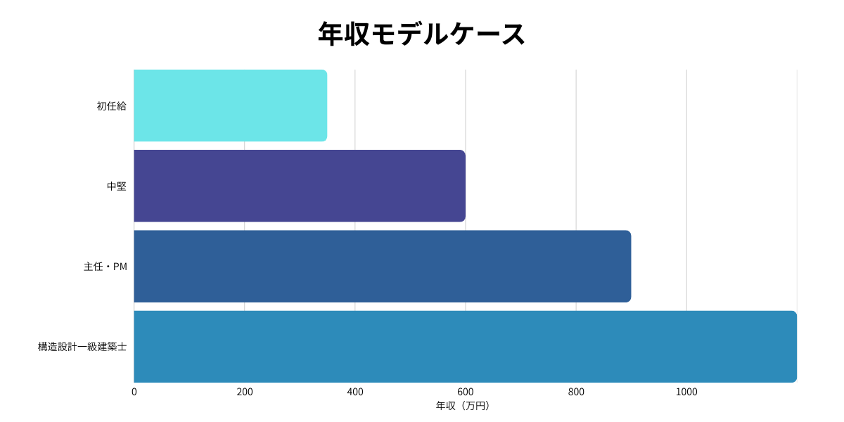 ただし、経験を積めば収入は着実に伸びます。5年程度で年収500万〜700万円、主任設計者やプロジェクトリーダーになれば800万〜1000万円以上も現実的です。構造設計一級建築士などの専門資格を取得すれば、年収1000万円超も珍しくありません。